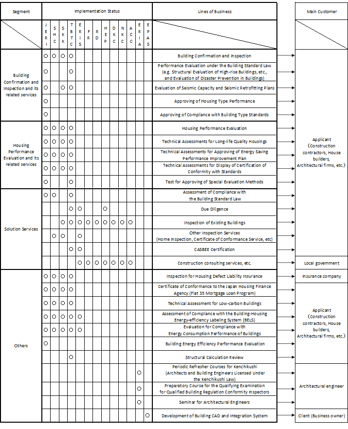 JERI: Japan ERI Co., Ltd. SHC: Jyutaku Seinou Hyouka Center Co., Ltd. SKK: Sakoken Co., Ltd. TBTC: Tokyo Bldg-Tech Center Co.,Ltd.